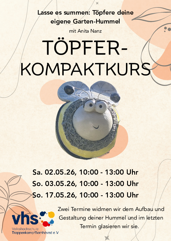 Jetzt buchen: https://www.vhs-trappenkamp-bornhoeved.de/kurssuche/kurs/Lasse+es+summen+Toepfere+deine+eigene+Garten-Hummel/T2+2.082